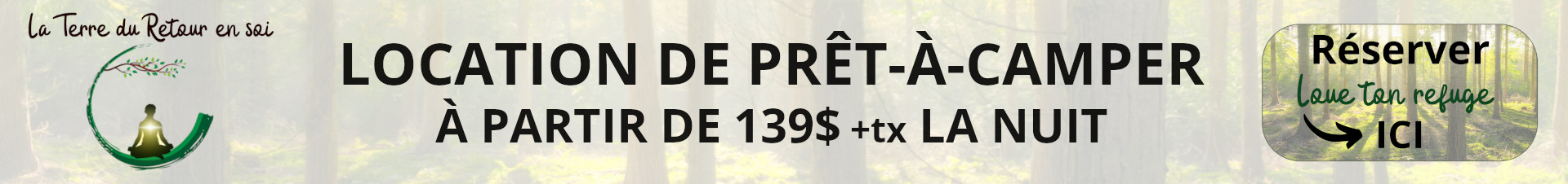 Centre de méditation et ressourcement, location de cinq refuges rustiques en forêt du style glamping/prêt-à-camper pour te reconnecter à ta nature profonde.