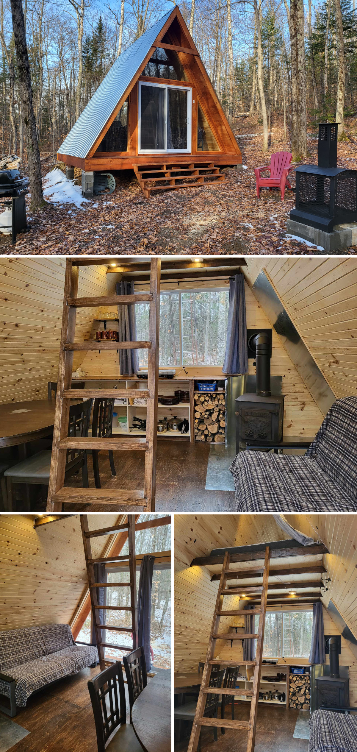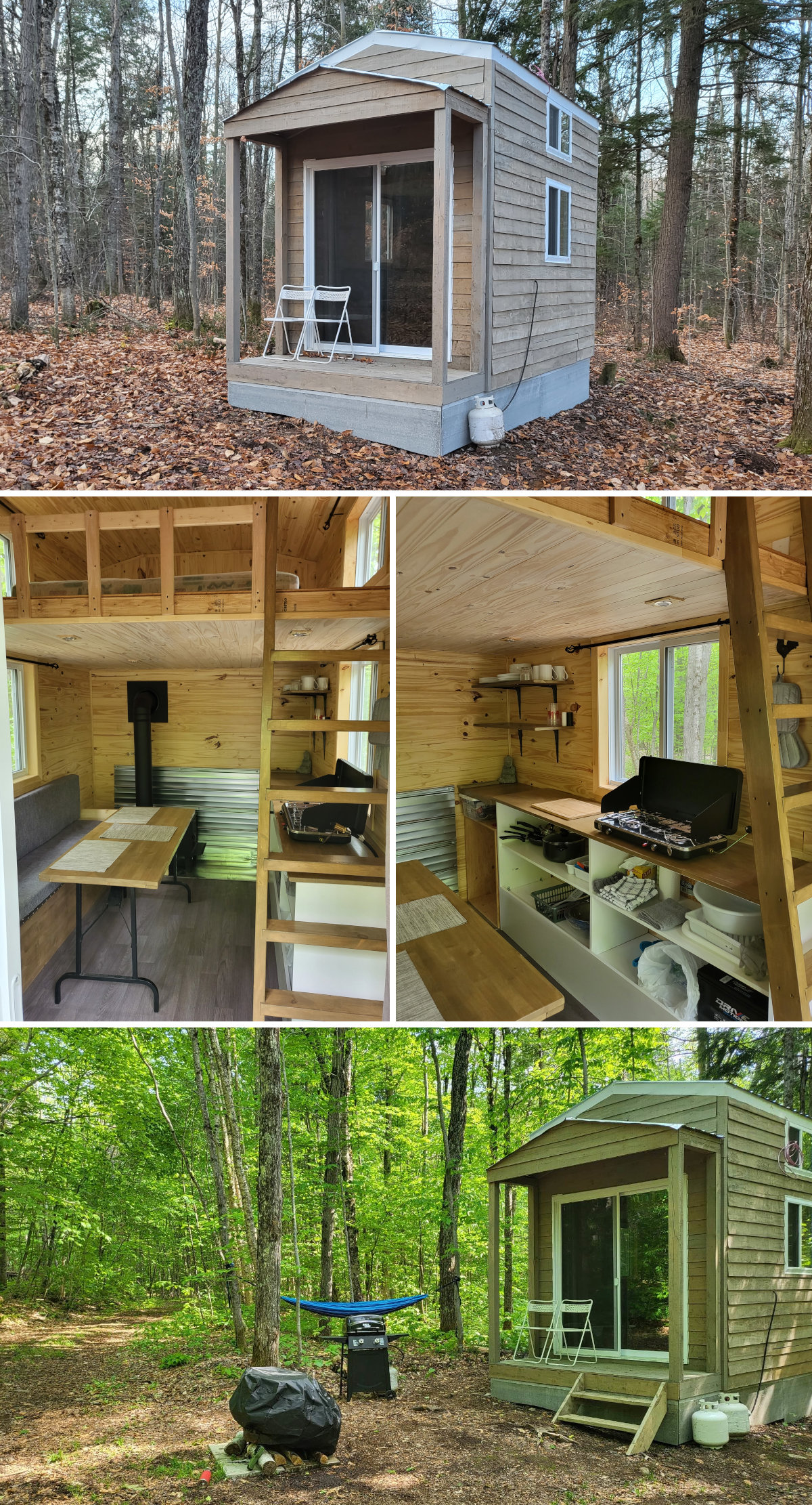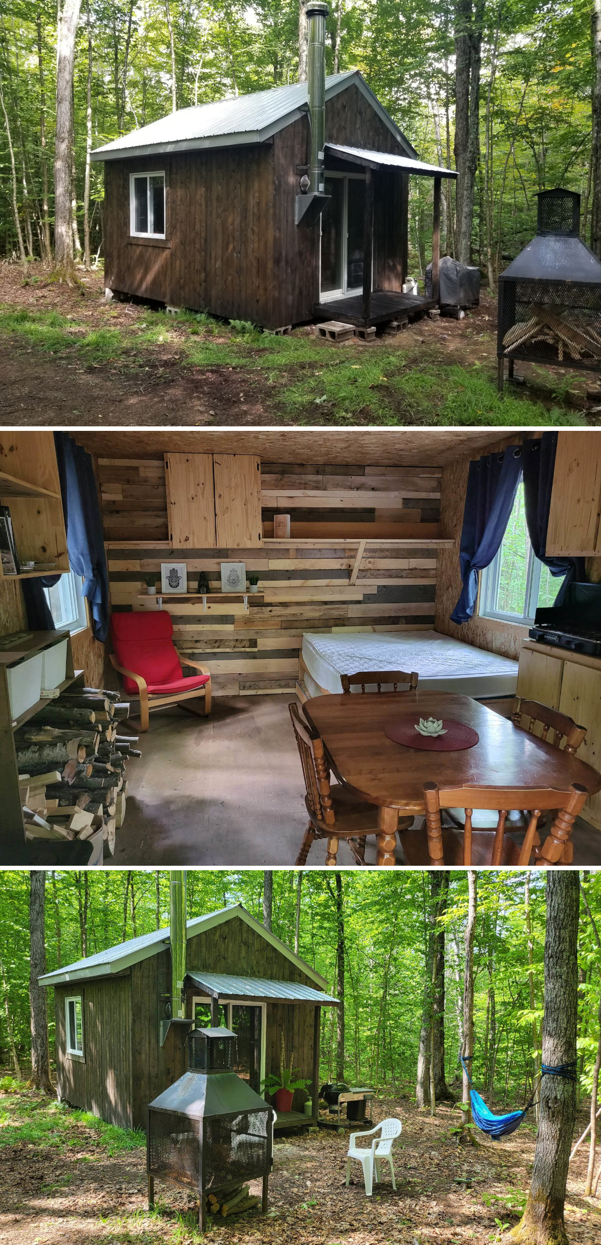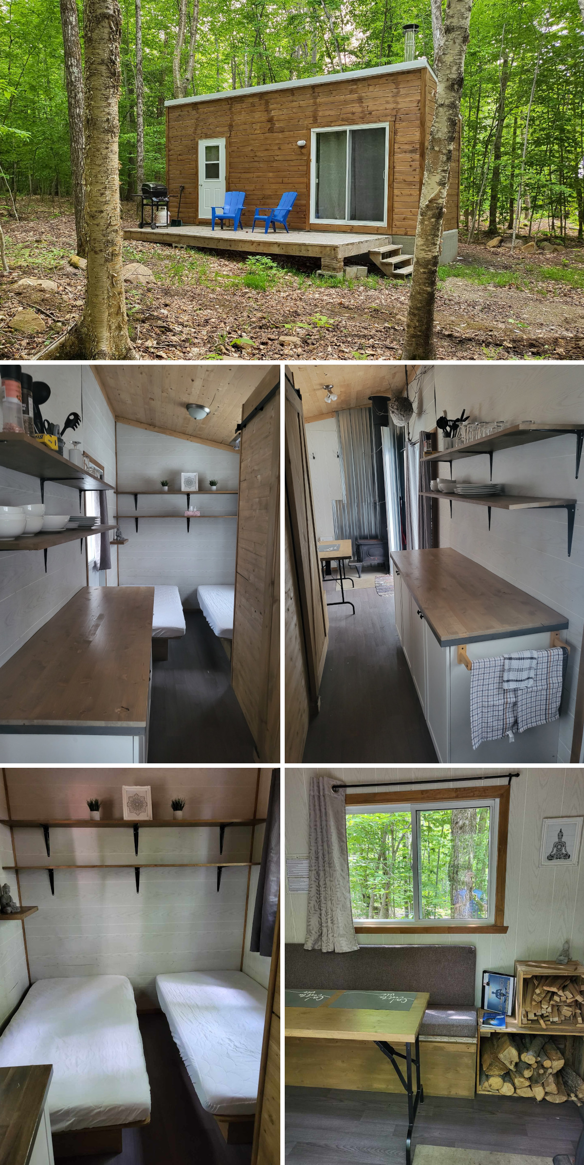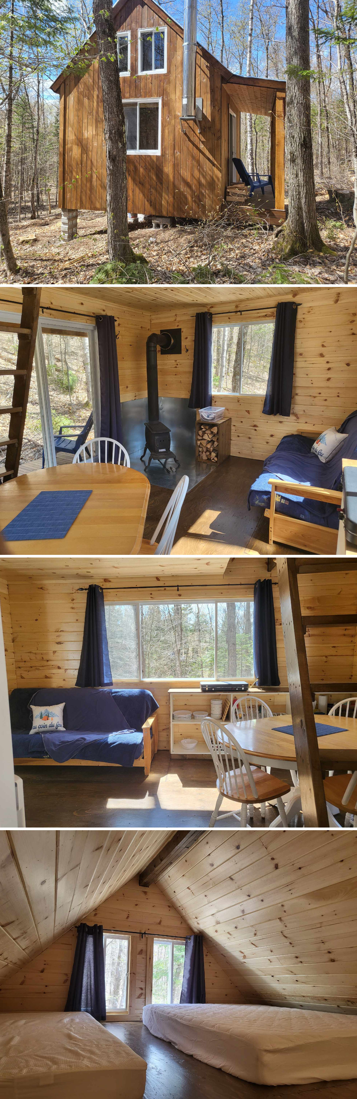 Super chaleureux , avec de grandes fenêtres qui permettent d'observer la nature! Pour un moment calme, de ressourcement en nature, une fin de semaine en amoureux ou juste une pause du tourbillon du quotidien ce merveilleux refuge vous permettra de vous y déposer. Avec pôele à bois et espace de feu extérieur. Il peut accueillir jusqu'à 4 personnes. Il est équipé de : petite cuisinette avec vaisselle de base, poêle et chaudron (brûleur deux ronds propane avec bombonne). 1 lit double et un futon double.