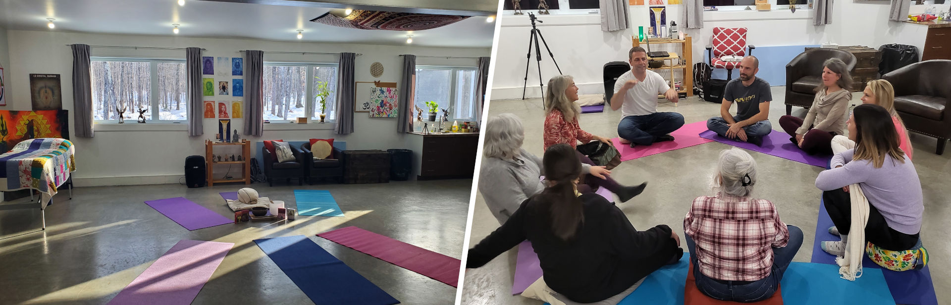 Location de la salle de yoga et méditation pour retraite et atelier à la journée et fin de semaine : 120$ par jour et 220$ pour 2 jours.