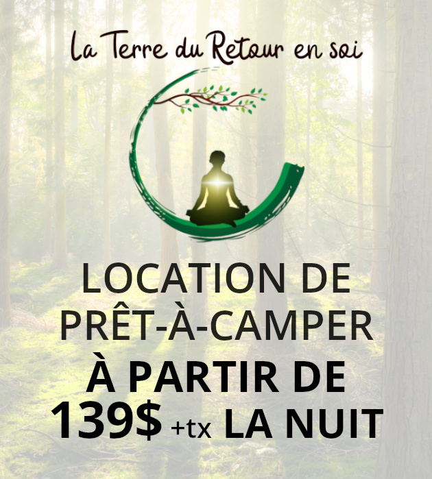 Centre de méditation et ressourcement, location de cinq refuges rustiques en forêt du style glamping/prêt-à-camper pour te reconnecter à ta nature profonde.