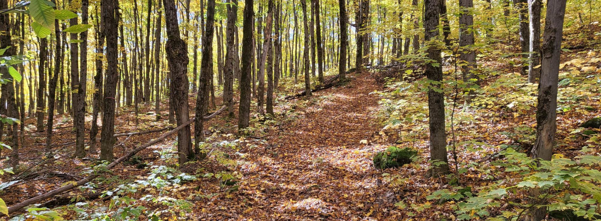 La terre de 70 acres te donne accès à 2.5 KM. De sentier de marches en forêt et une vue magnifique en haut de la montagne! Un endroit zen pour y méditer en contemplant la vue! Il y a une petite source d'eau mélodieuse qui ruisselle sur cette belle terre!